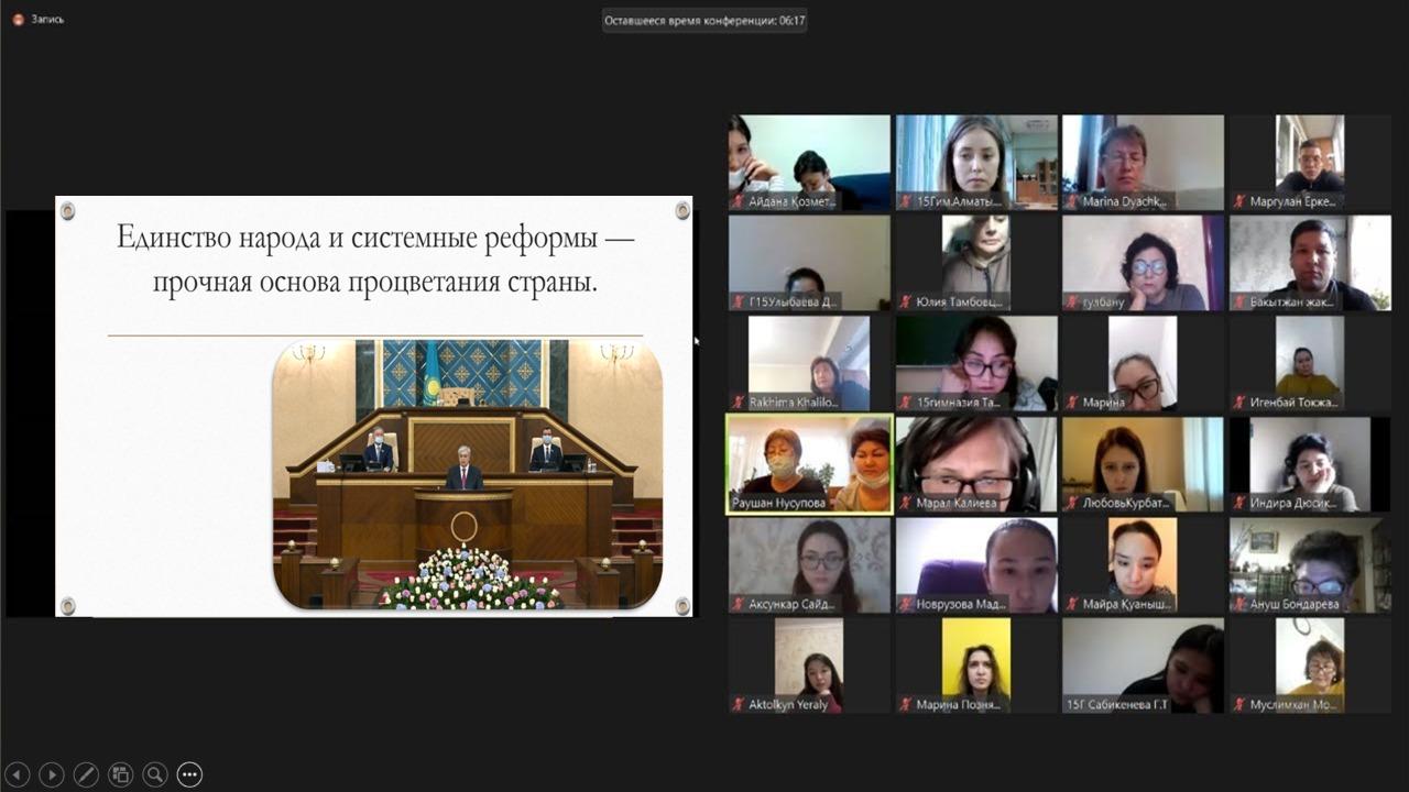 В Гимназии №15 было проведен семинар с учителями на тему: Послание Президента Республики Казахстан К. К. Токаева "Единство народа и системные реформы-прочная основа процветания страны". Семинар провели администрация гимназии.