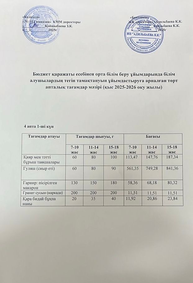 Ас мәзірі 1 апта 4 күн 03.10.2024