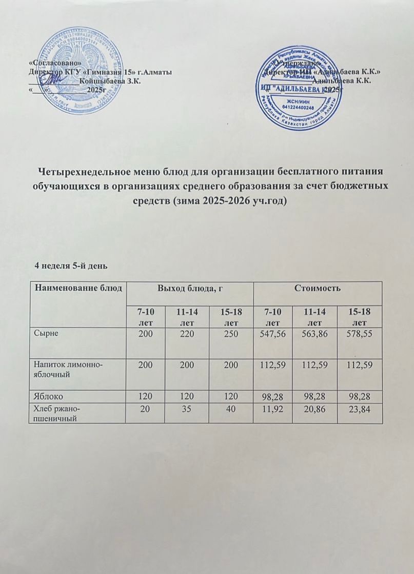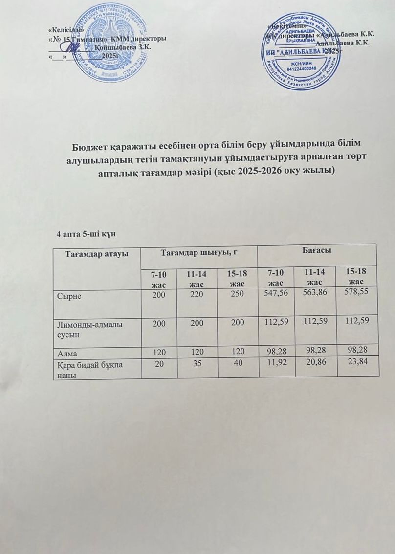 Ас мәзірі 1 апта 4 күн 03.10.2024