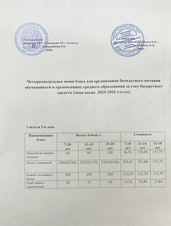 » Ас мәзірі 1 апта 5-ші күн