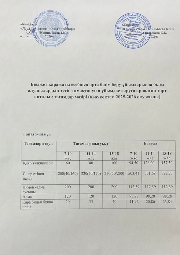 Ас мәзірі 2 апта 1 күн. 09.09.2024ж.