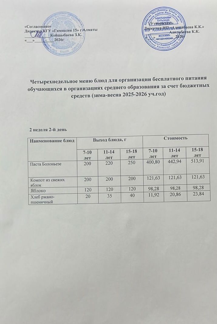 Ас мәзірі 2 апта 1 күн.