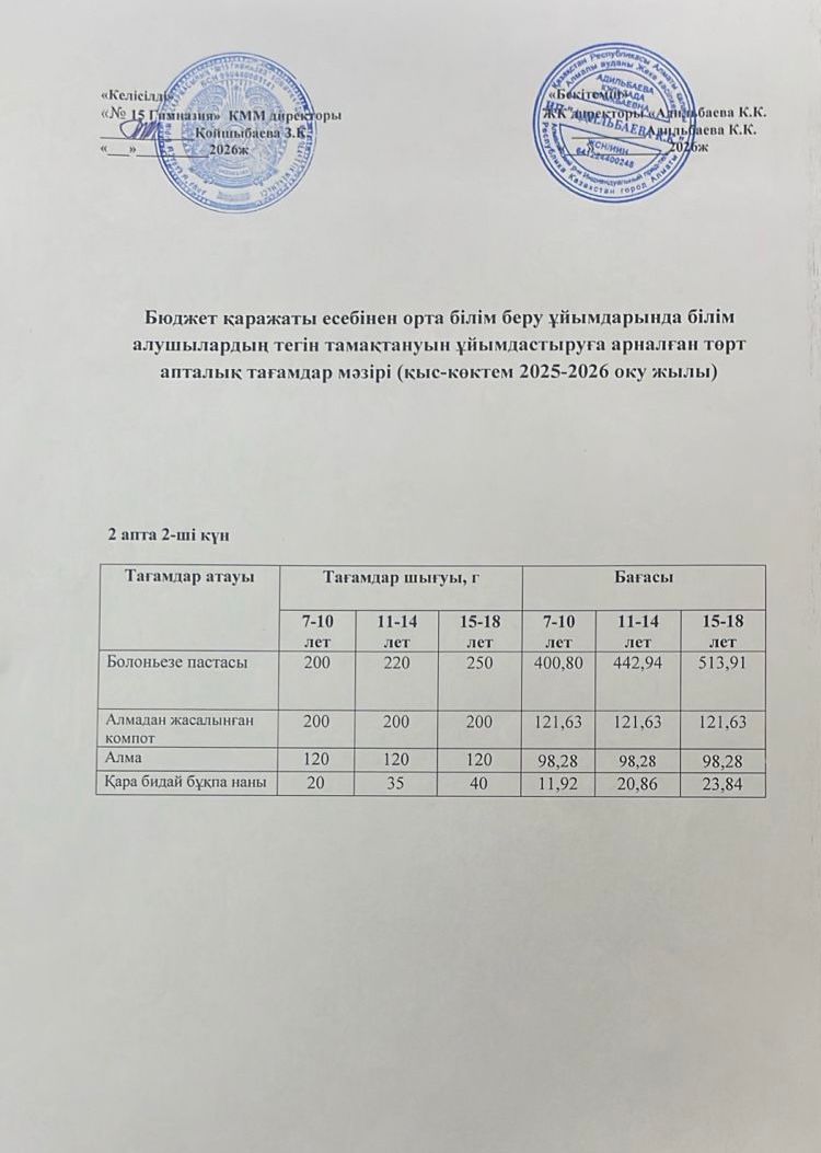 » Ас мәзірі 2 апта 2-ші күн