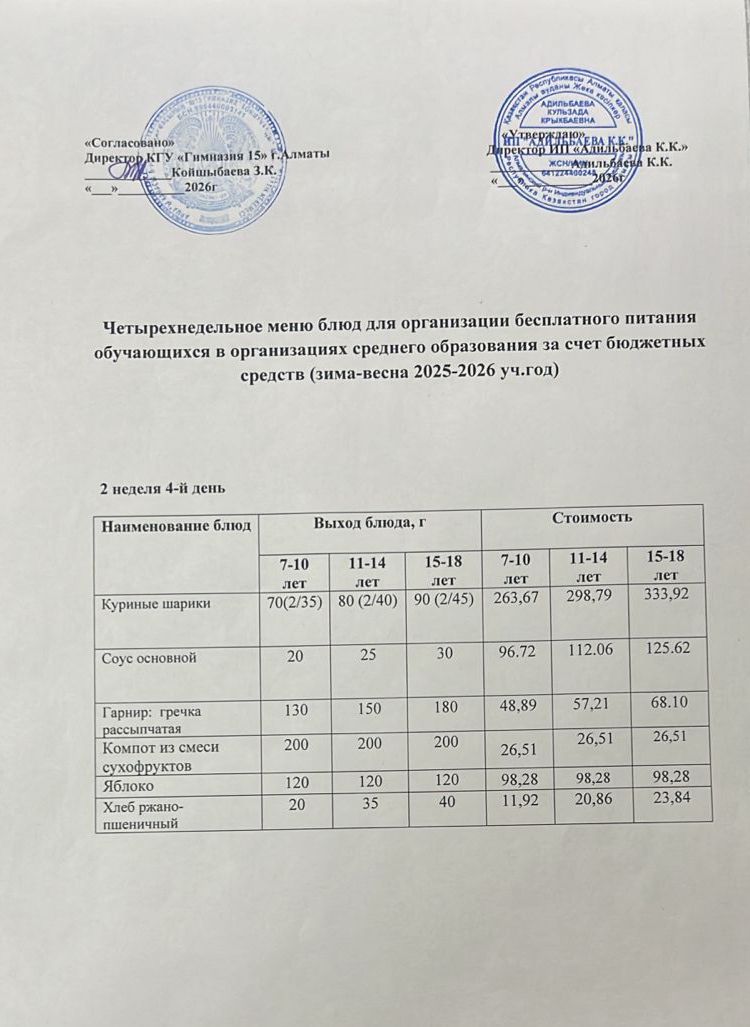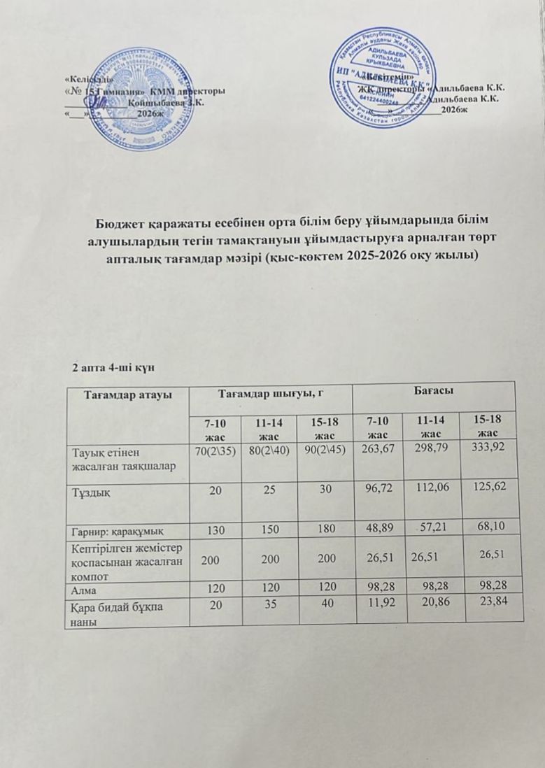 Ас мәзірі 2 апта 1 күн. 09.09.2024ж.
