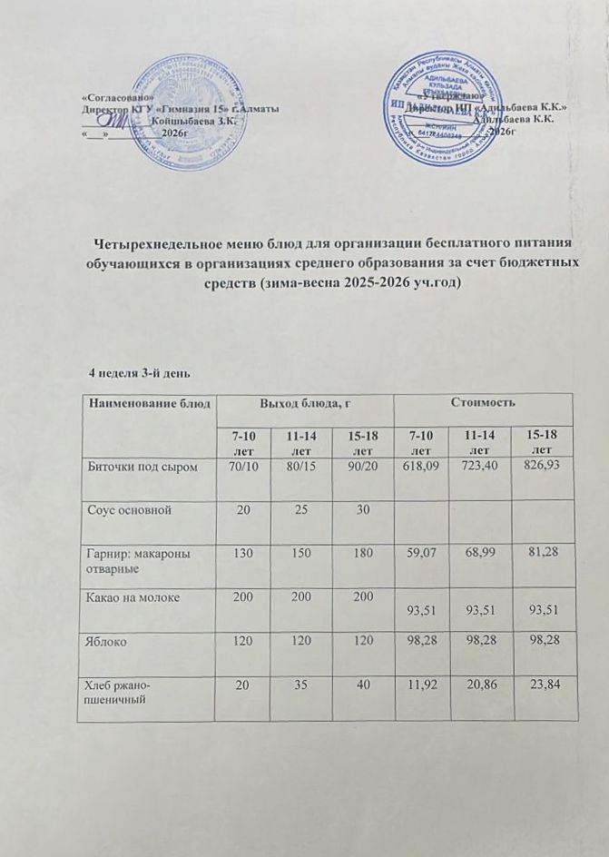Ас мәзірі 1 апта 4 күн 03.10.2024