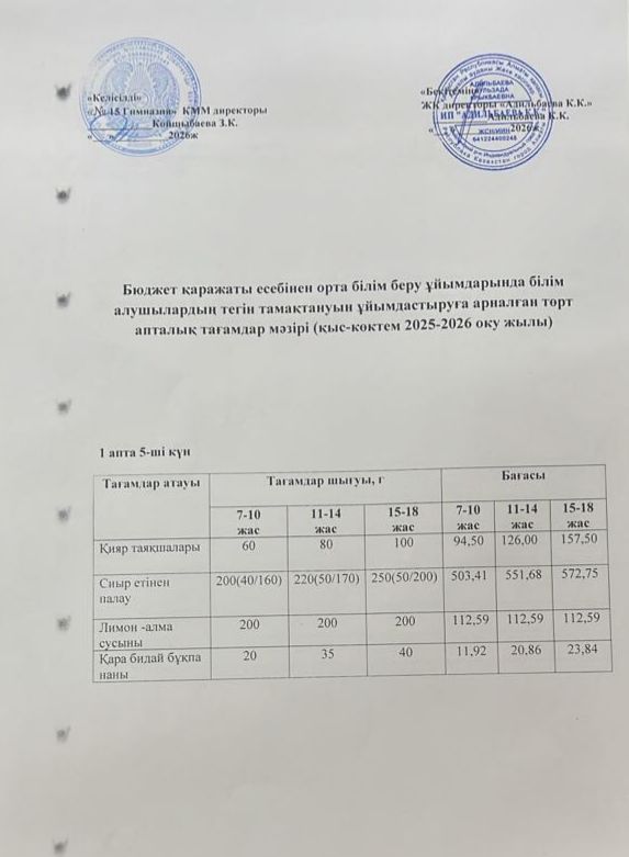 Ас мәзірі 2 апта 1 күн. 09.09.2024ж.