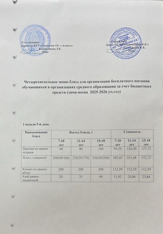 » Ас мәзірі 1 апта 5-ші күн