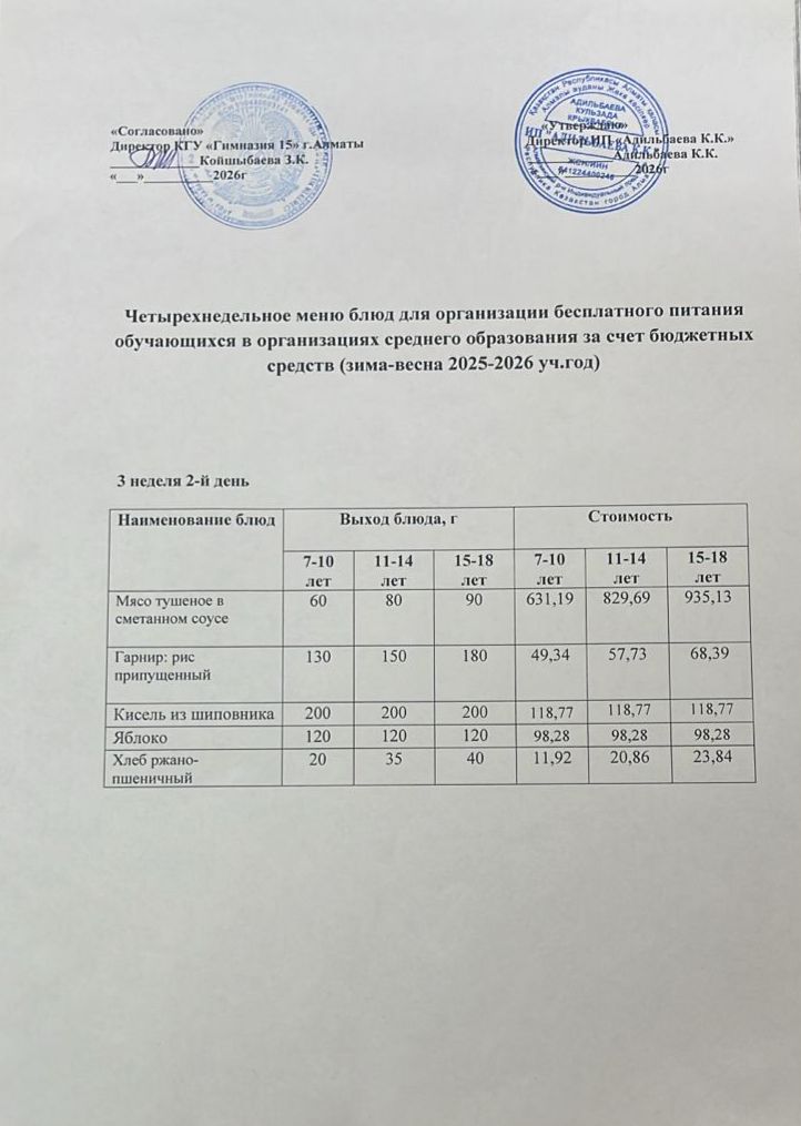 » Ас мәзірі 3 апта 2-ші күн