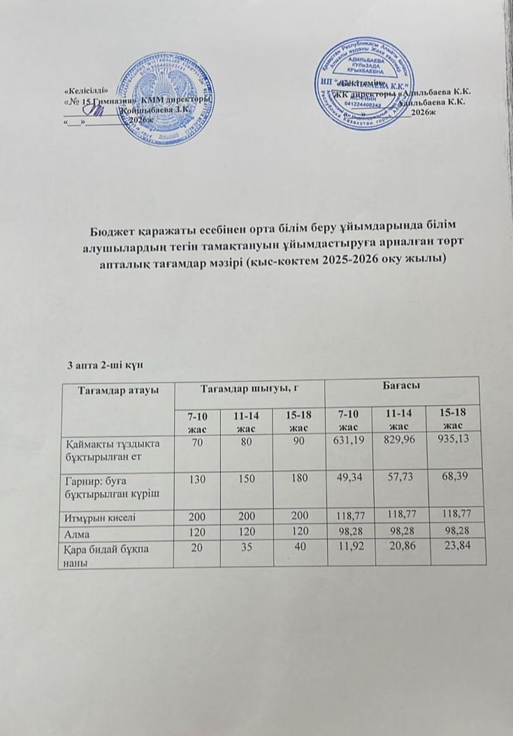 Ас мәзірі 2 апта 1 күн. 09.09.2024ж.