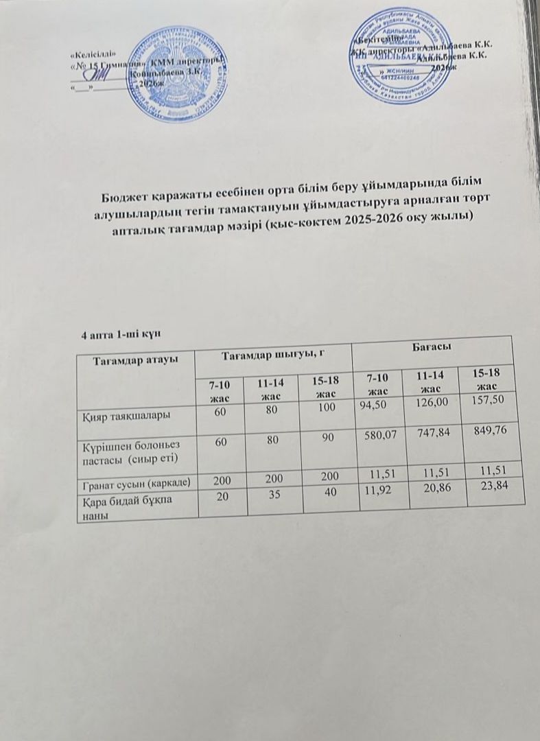 Ас мәзірі 2 апта 1 күн. 09.09.2024ж.