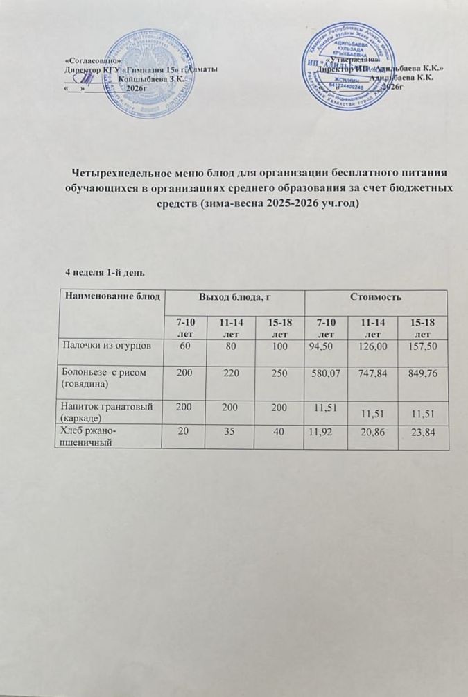 Ас мәзірі 1 апта 4 күн 03.10.2024