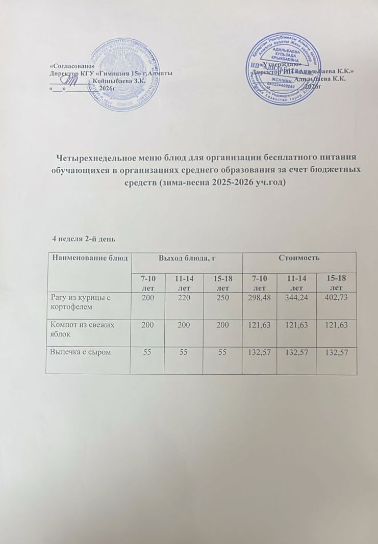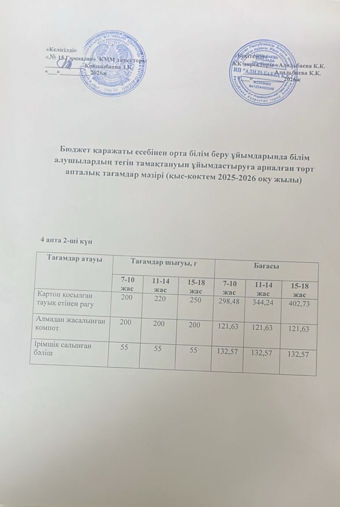 Ас мәзірі 1 апта 4 күн 03.10.2024