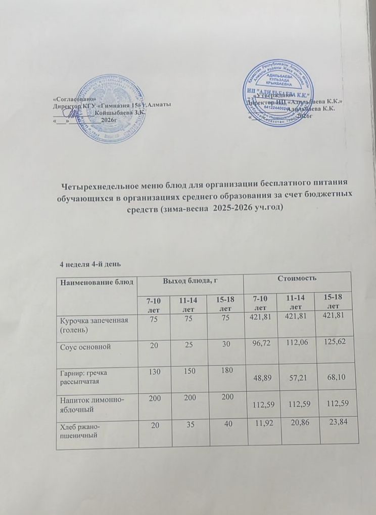 Ас мәзірі 1 апта 4 күн 03.10.2024
