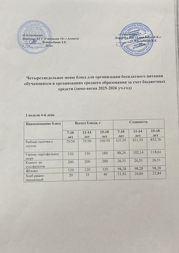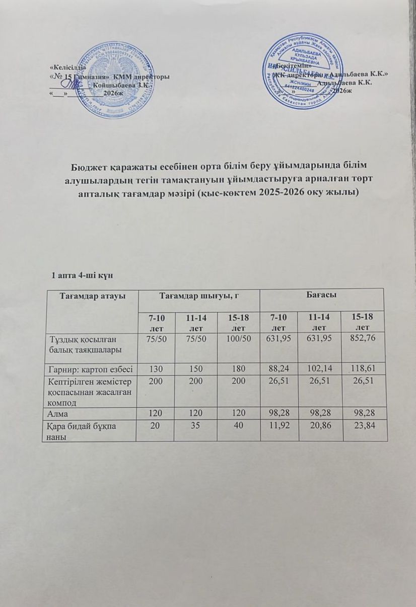 » Ас мәзірі 1 апта 4-ші күн