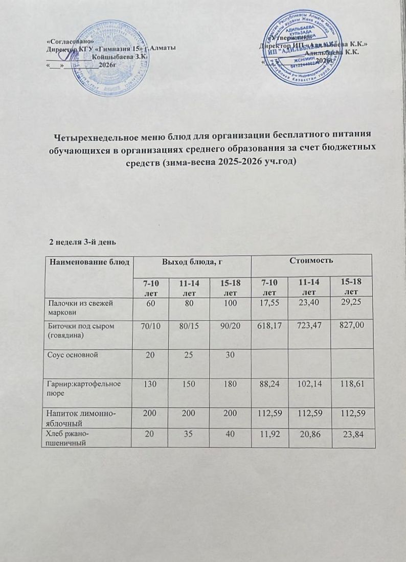 Ас мәзірі 2 апта 1 күн. 09.09.2024ж.