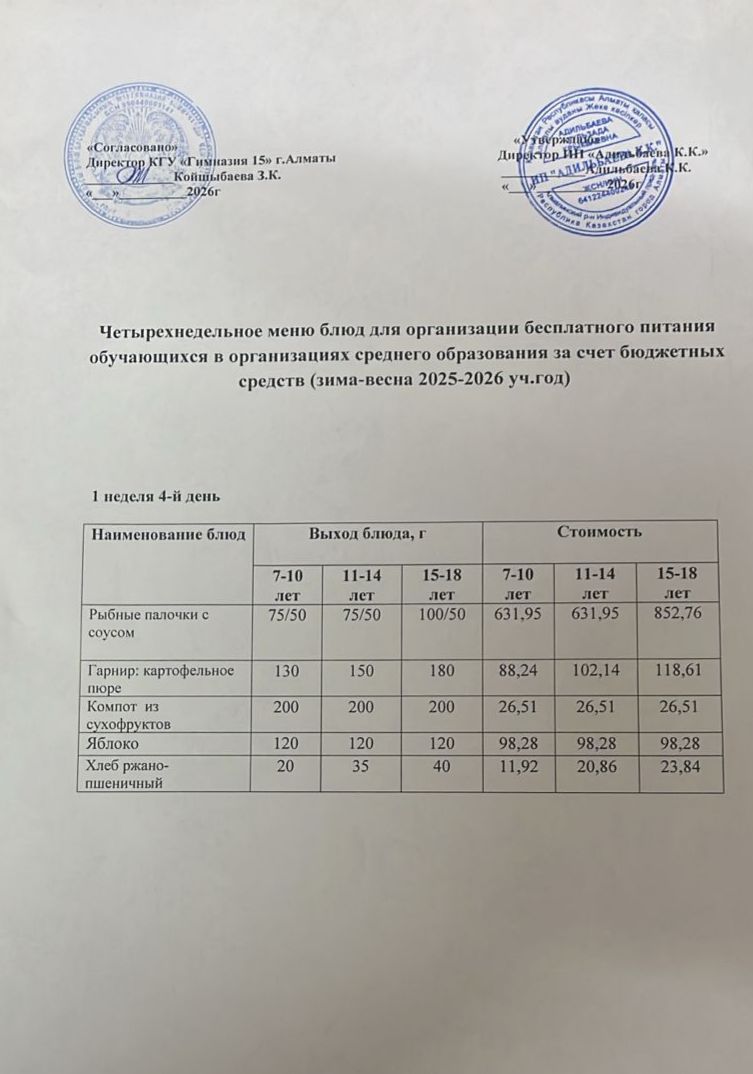 Ас мәзірі 1 апта 4 күн 03.10.2024