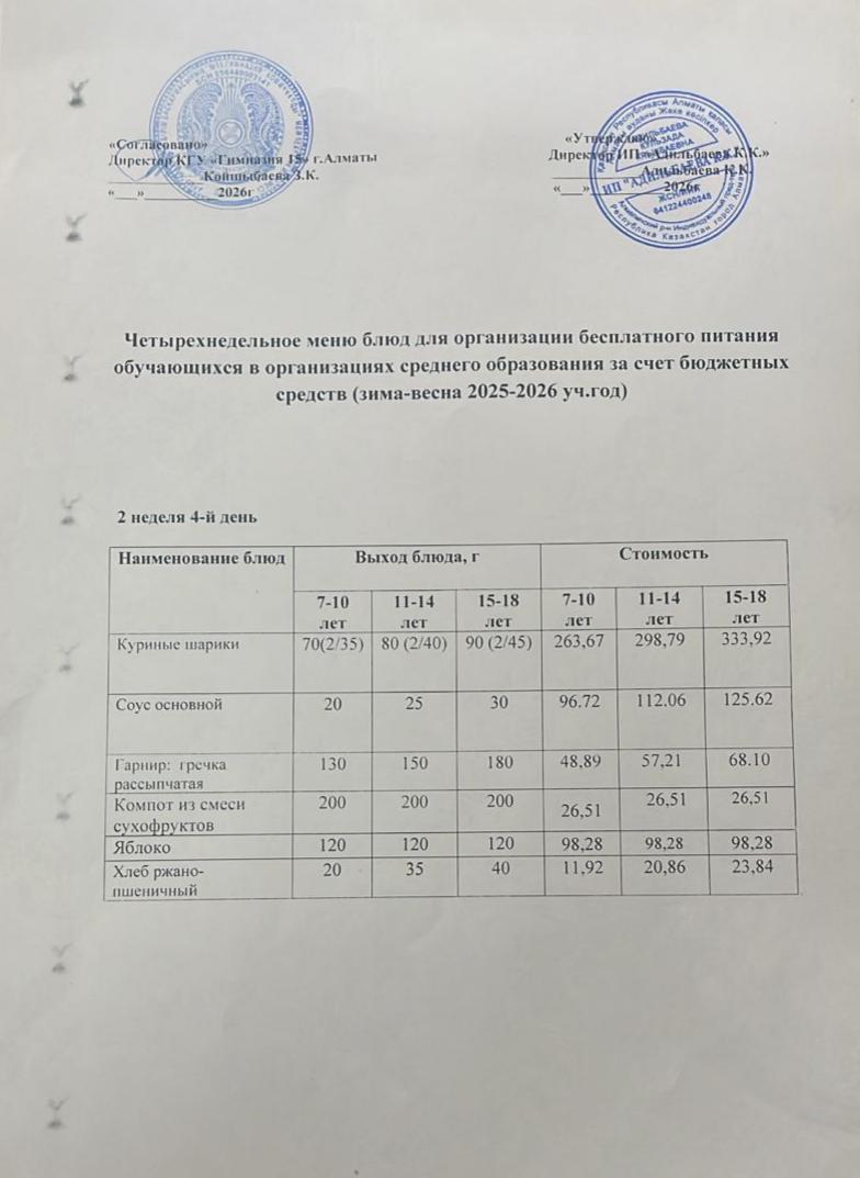 Ас мәзірі 2 апта 1 күн. 09.09.2024ж.