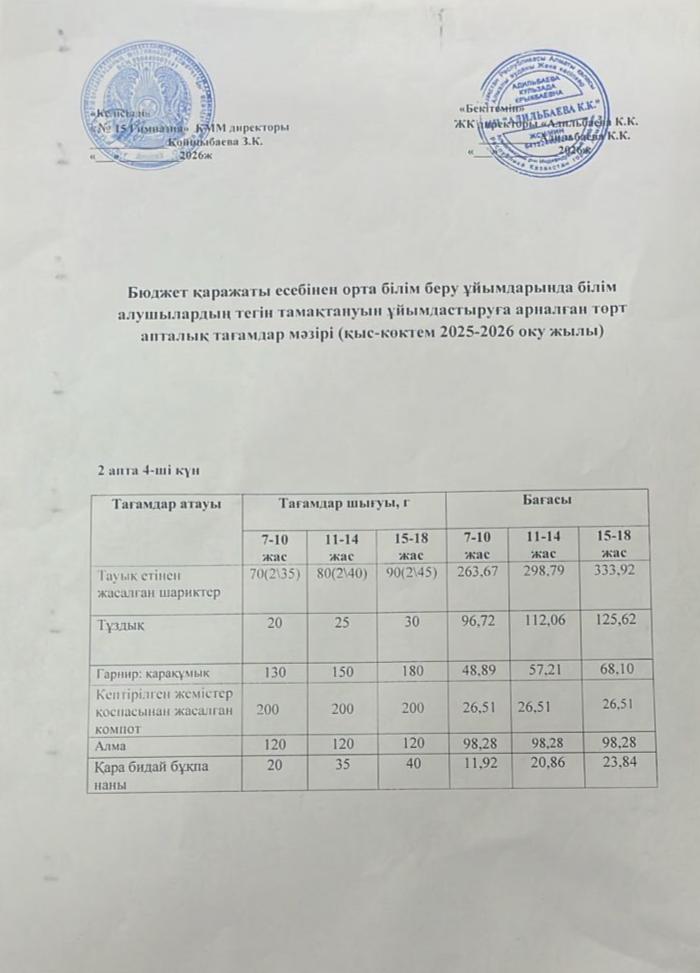 Ас мәзірі 1 апта 4 күн 03.10.2024