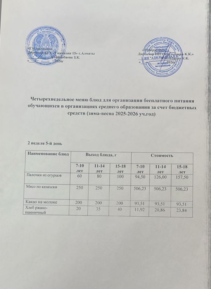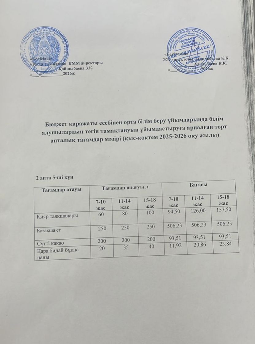 Ас мәзірі 2 апта 1 күн.