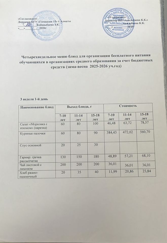 Ас мәзірі 1 апта 4 күн 03.10.2024
