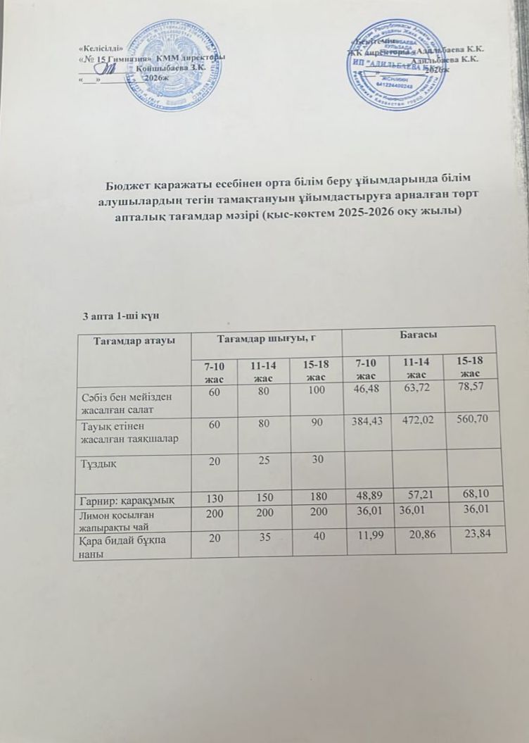 Ас мәзірі 2 апта 1 күн. 09.09.2024ж.