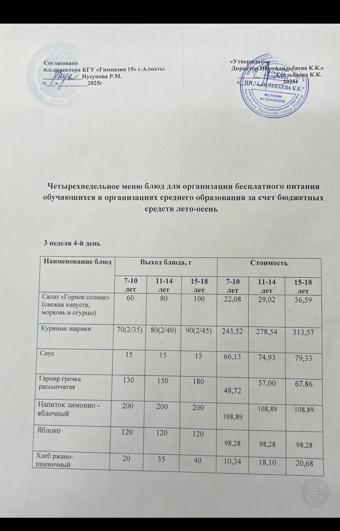 Ас мәзірі.3апта 3 күн.15.05.2024ж