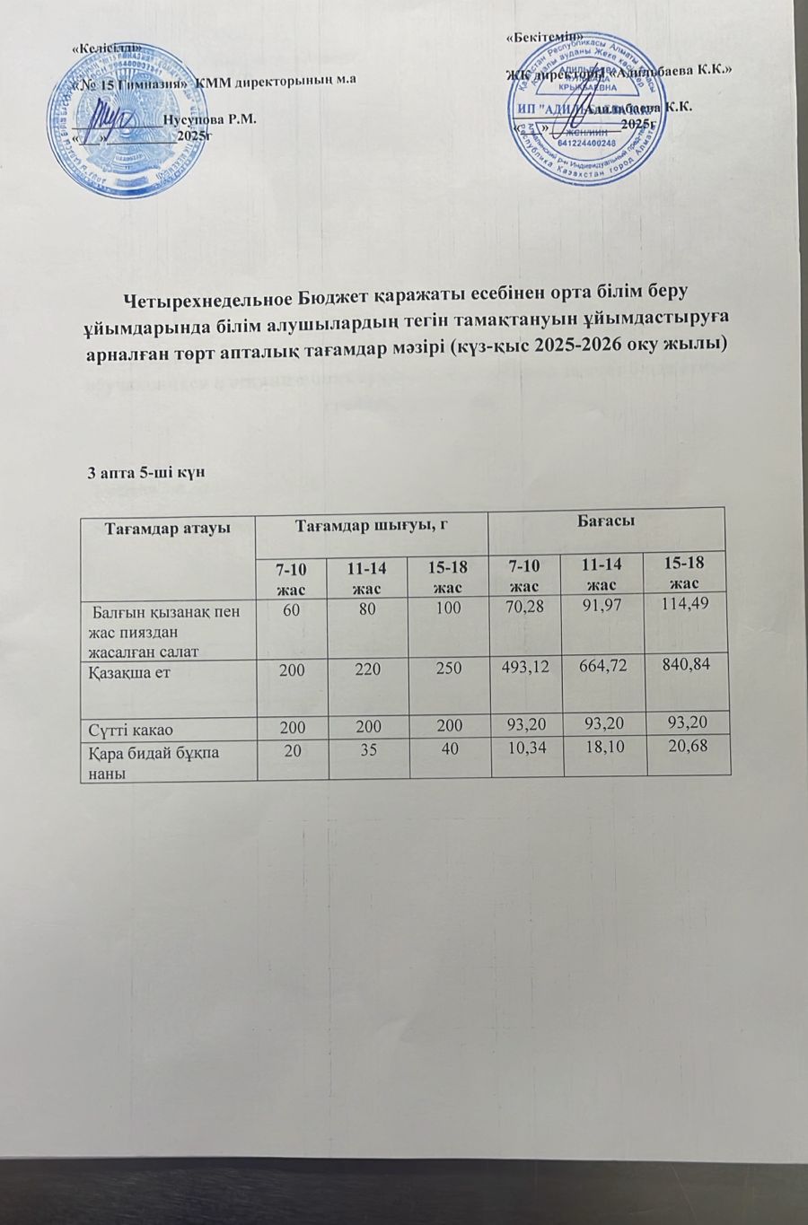 Ас мәзірі.3апта 3 күн.15.05.2024ж