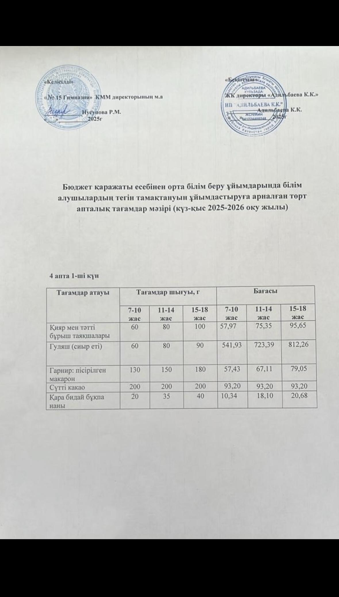 Ас мәзірі 1 апта 2-ші күн 02.09.2025