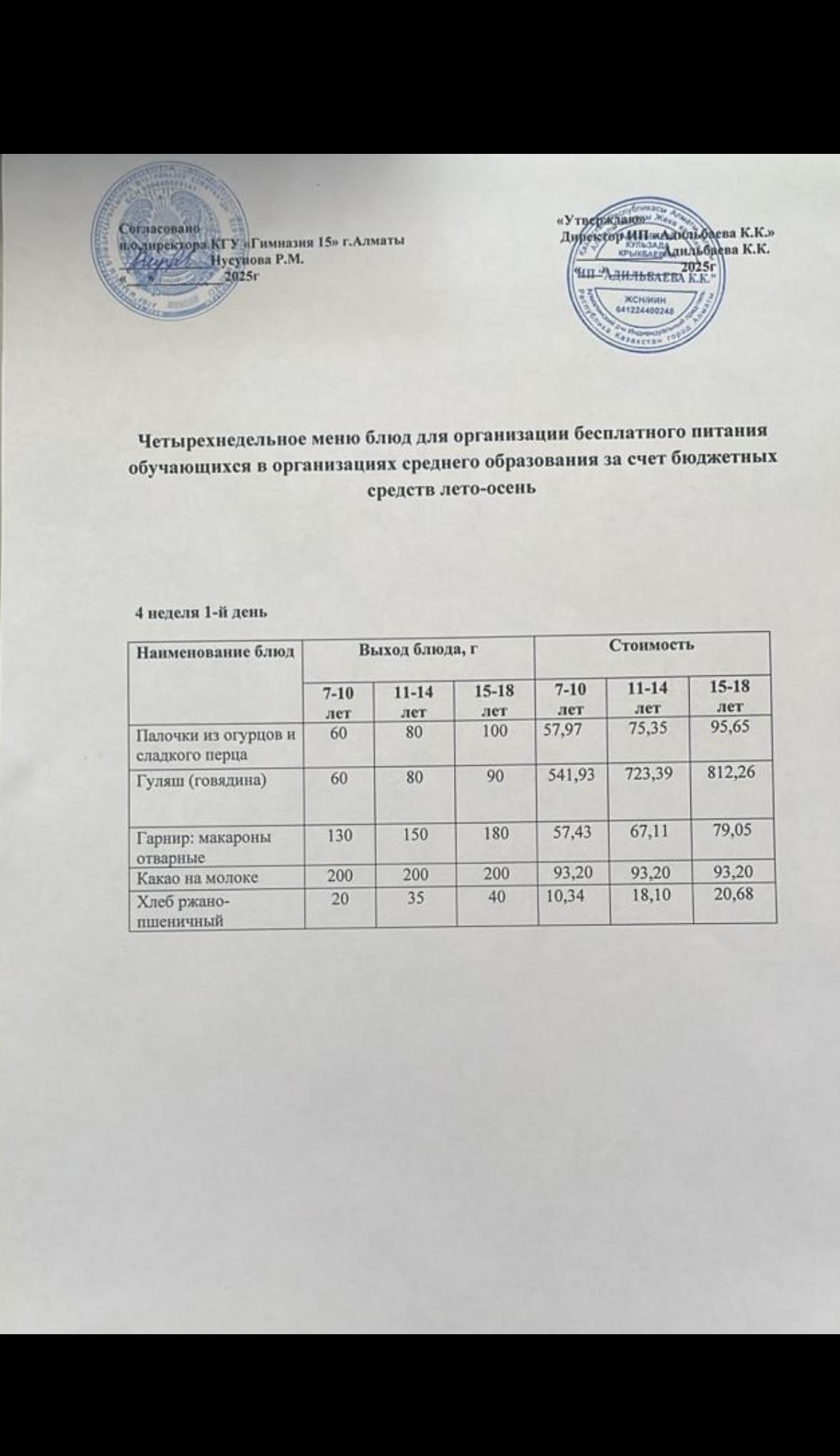 Ас мәзірі 1 апта 4 күн 03.10.2024