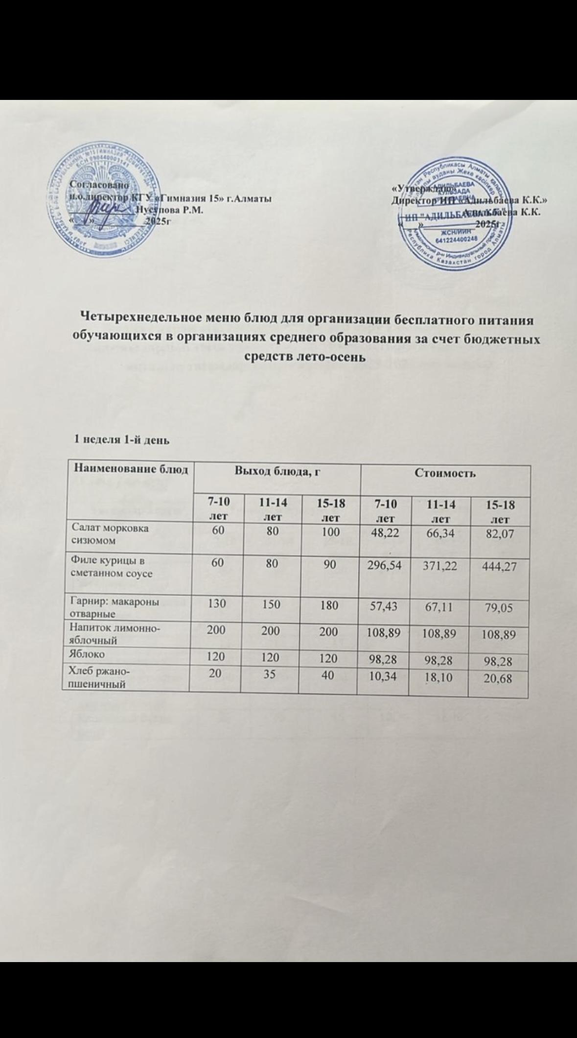 Ас мәзірі 1апта 4-күн 04.09.2025