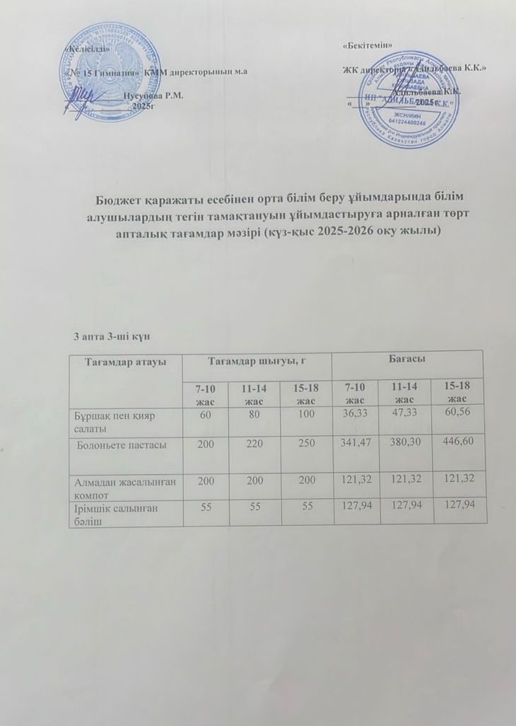 Ас мәзірі 1 апта 4 күн 03.10.2024