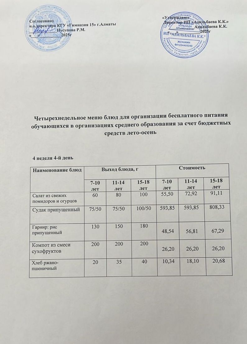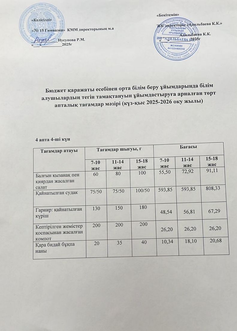 Ас мәзірі 1 апта 4 күн 03.10.2024