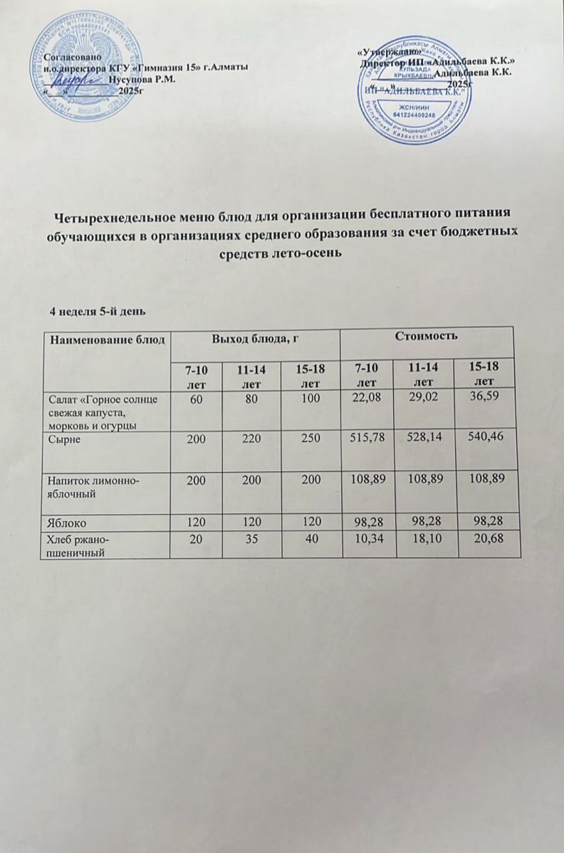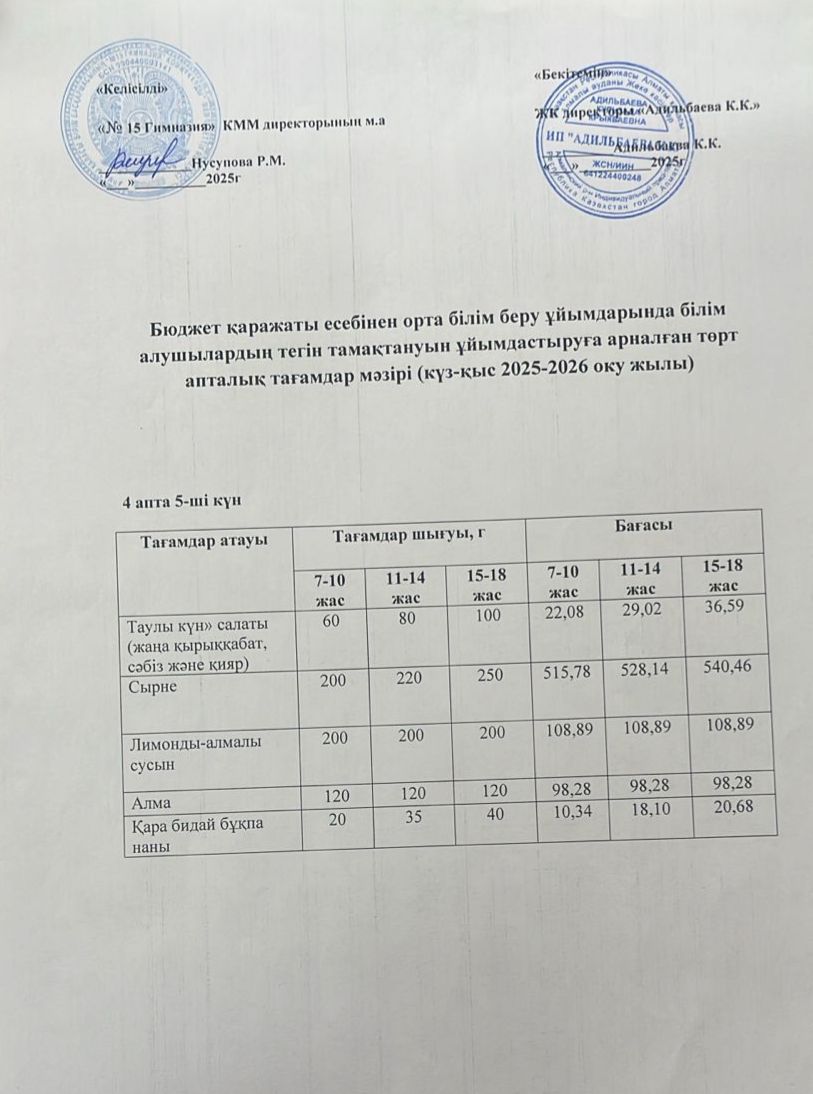 Ас мәзірі 1 апта 4 күн 03.10.2024