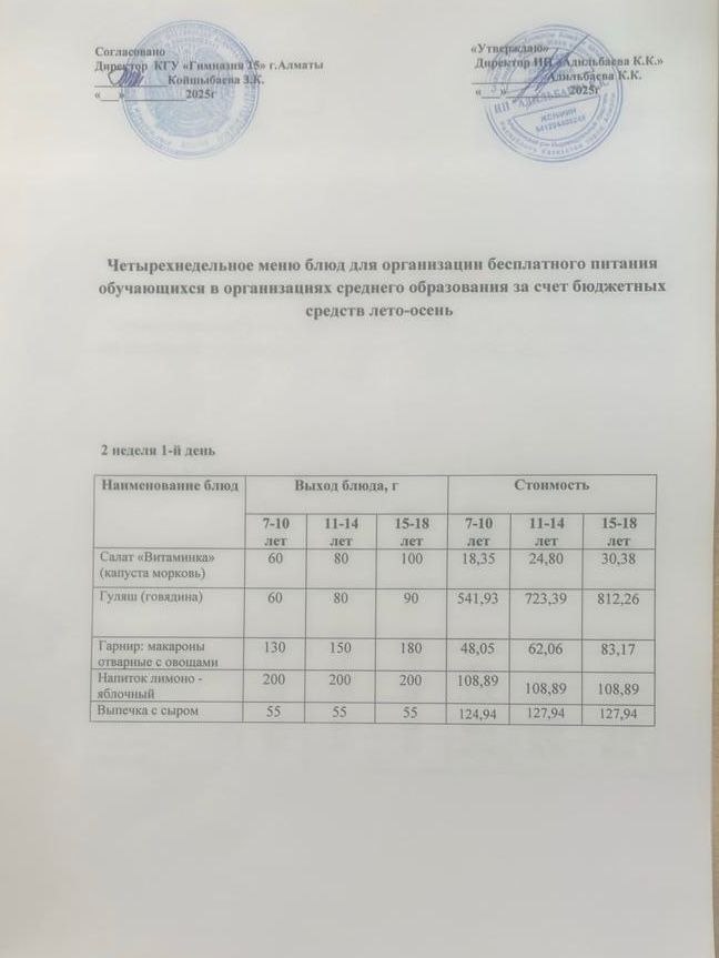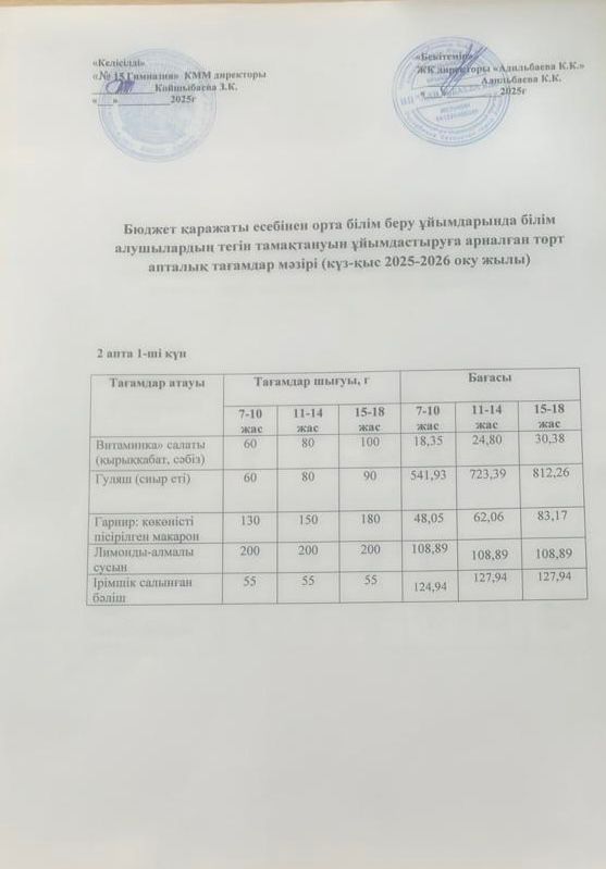 Ас мәзірі 1 апта 2-ші күн 02.09.2025
