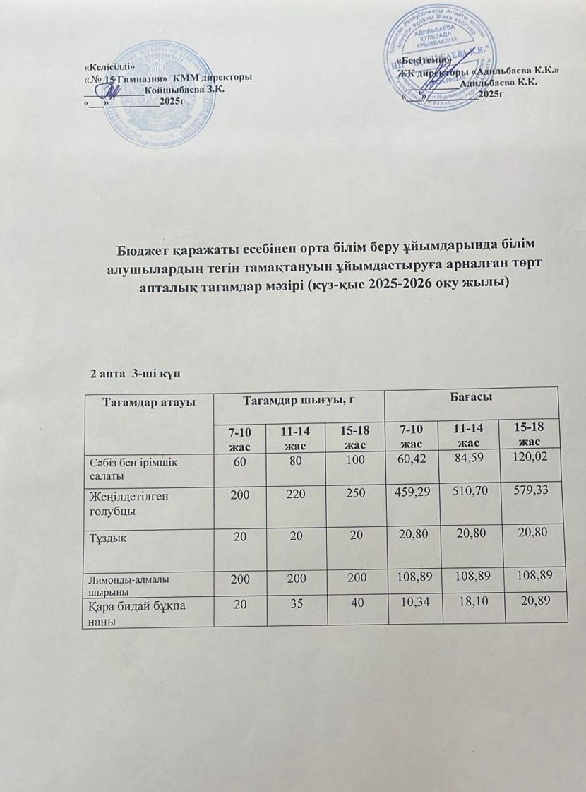 Ас мәзірі 1 апта 2-ші күн 02.09.2025
