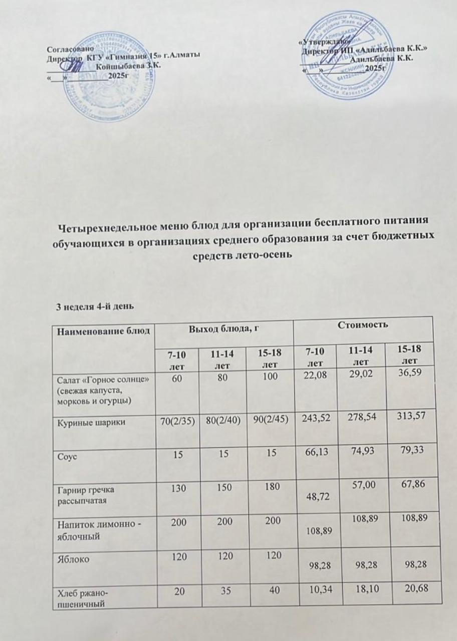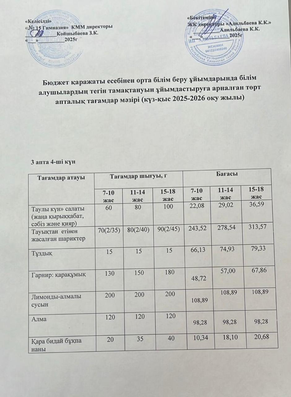 Ас мәзірі 1 апта 4 күн 03.10.2024