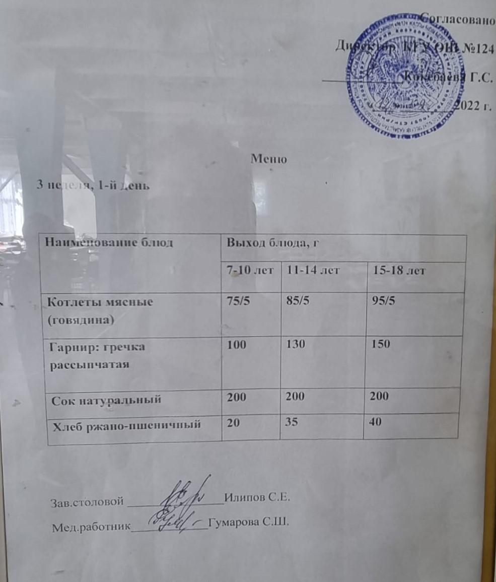 Перспективное меню 3 неделя,4 день 2022 - 2023 учебный год.