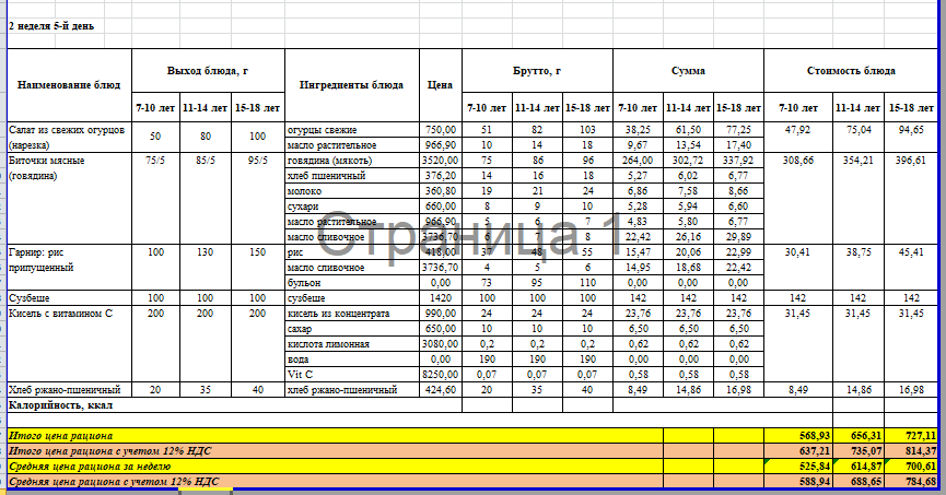 Меню 1 неделя 5 день