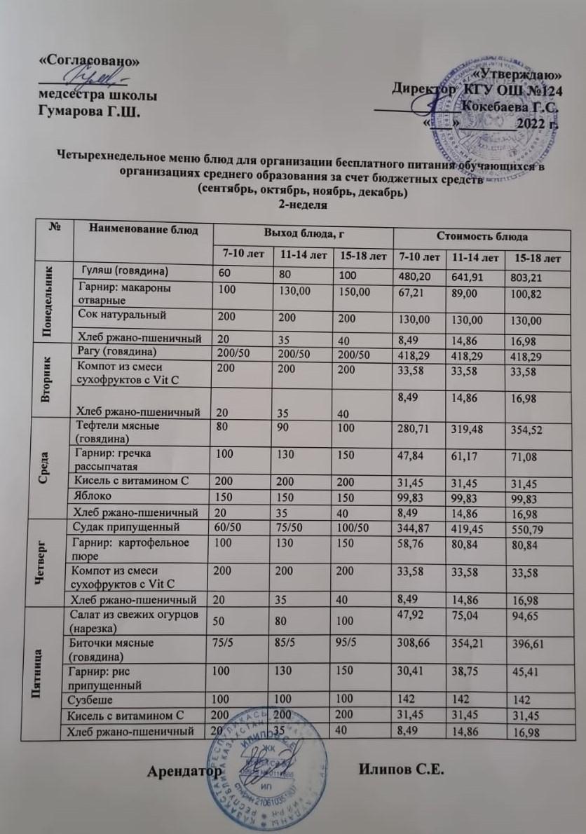 Меню 2 неделя 2 день