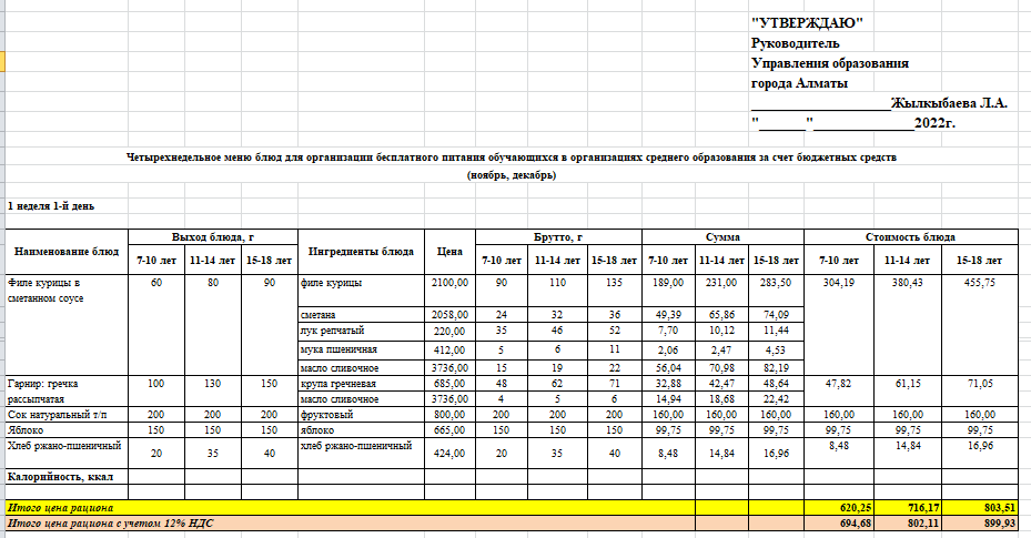 10 ноябрь 2022 0 1 2 3 4 5 Четырехнедельное меню блюд бесплатного питания 1неделя 1день Осы беттің QR-коды:QR-код этой страницы: