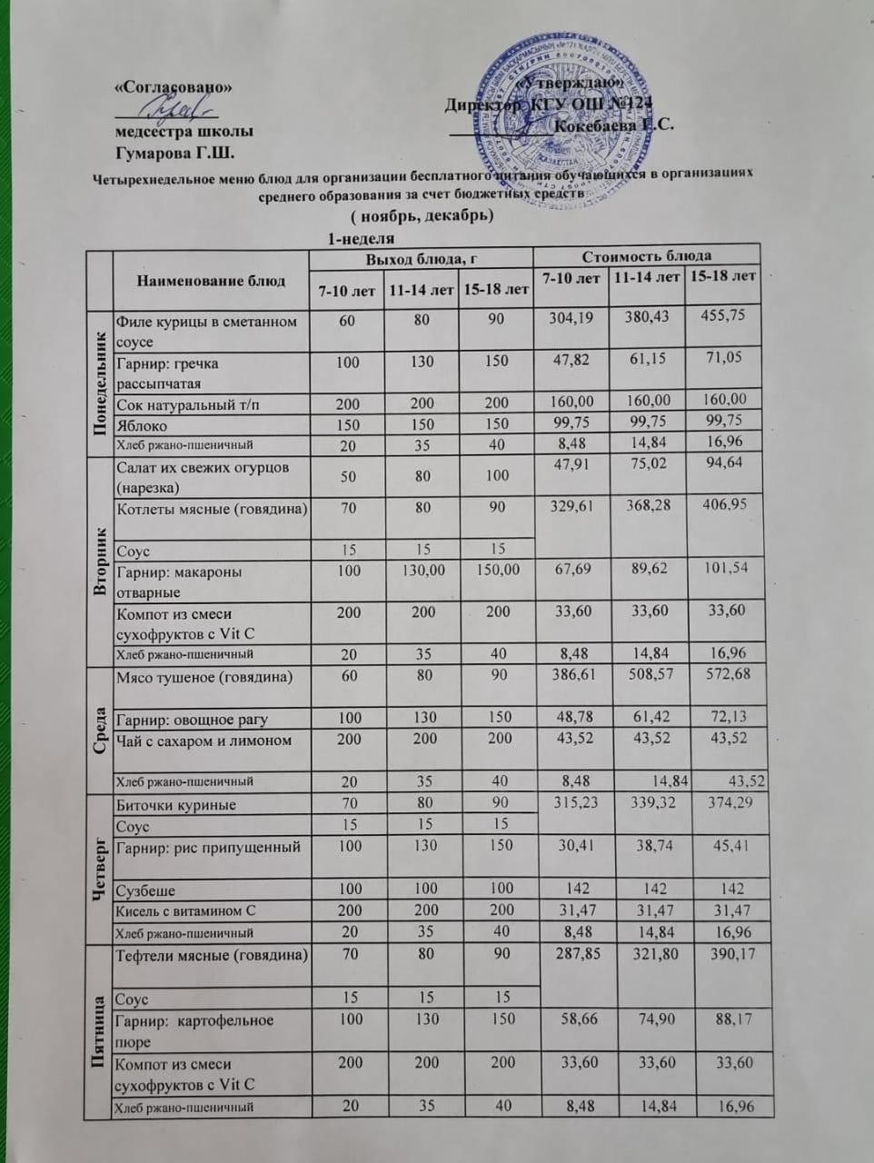 05 декабрь 2022 0 1 2 3 4 5 Четырехнедельное меню блюд организации бесплатного питания 1 неделя Осы беттің QR-коды:QR-код этой страницы: