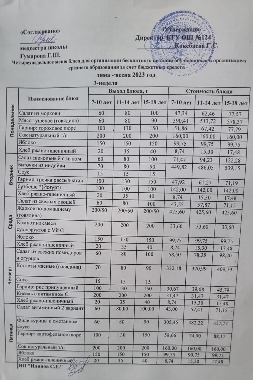 Черырехнедельное меню блюд для организации бесплатного питания отдельных категорий обучающихся в организациях среднего образования 3неделя 5день