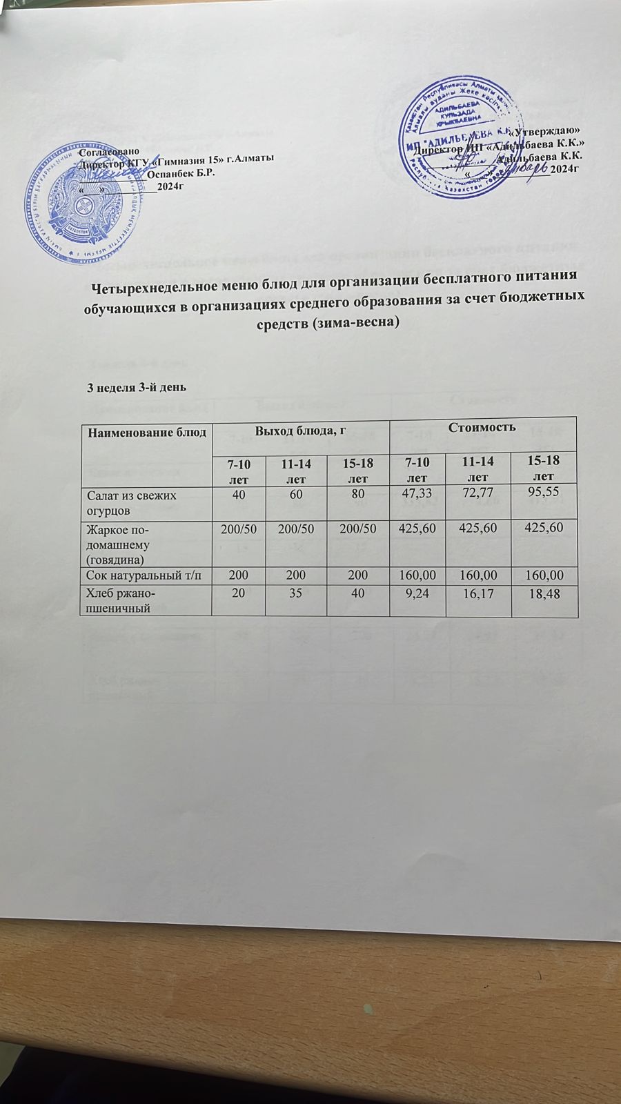 Ас мәзірі 1 апта 3 күн. 07.02.2024ж