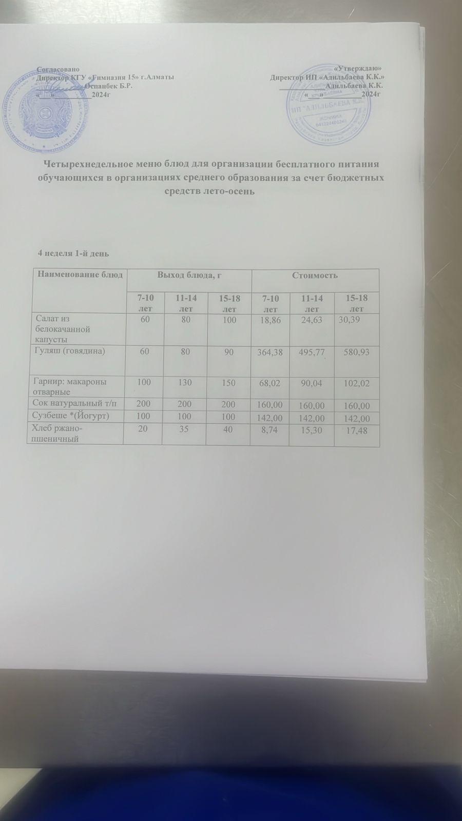 Ас мәзірі 2 апта 1 күн. 09.09.2024ж.