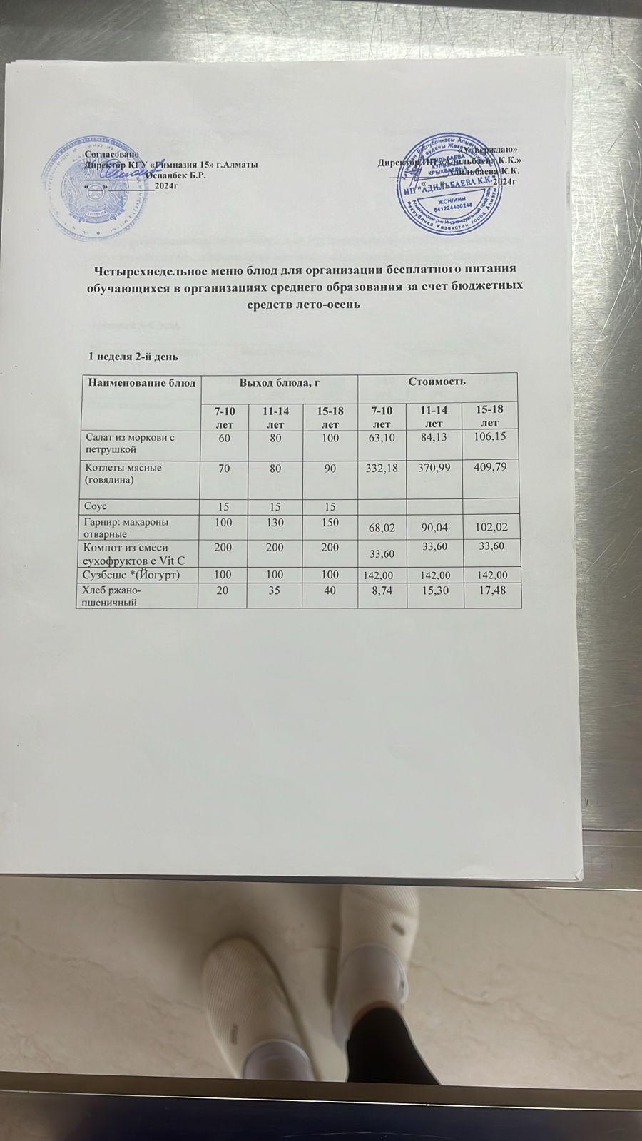 Ас мәзірі 2 апта 4 күн. 12.09.2024