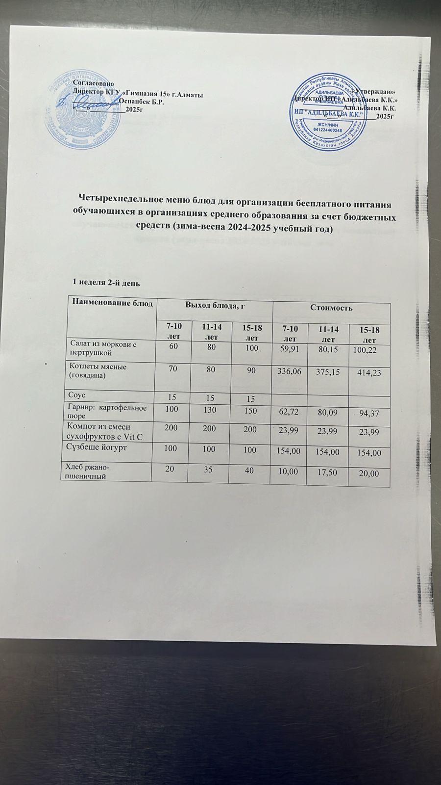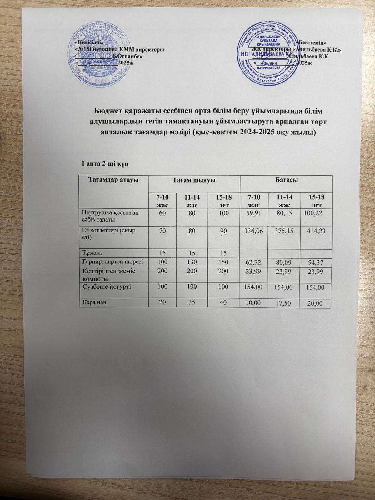 » Ас мәзірі 1 апта 2 күн 04.03.2025