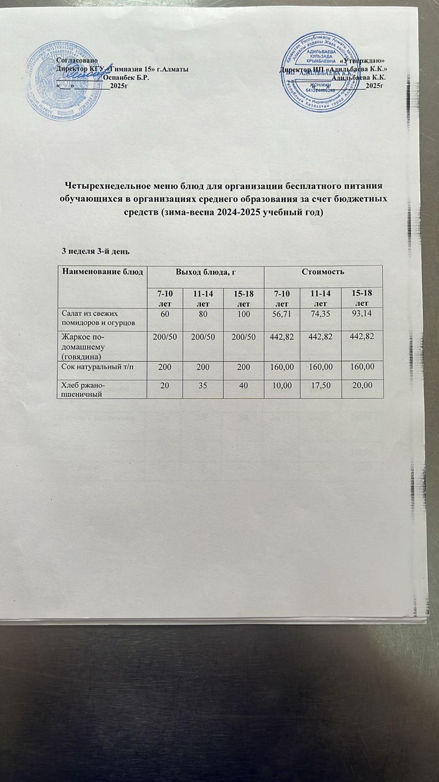 » Ас мәзірі 3 апта 3 күн 14.05.2025