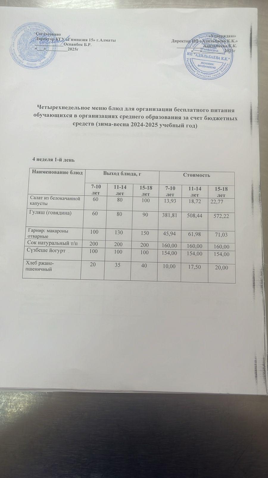 Ас мәзірі 2 апта 3 күн 16.04.2025