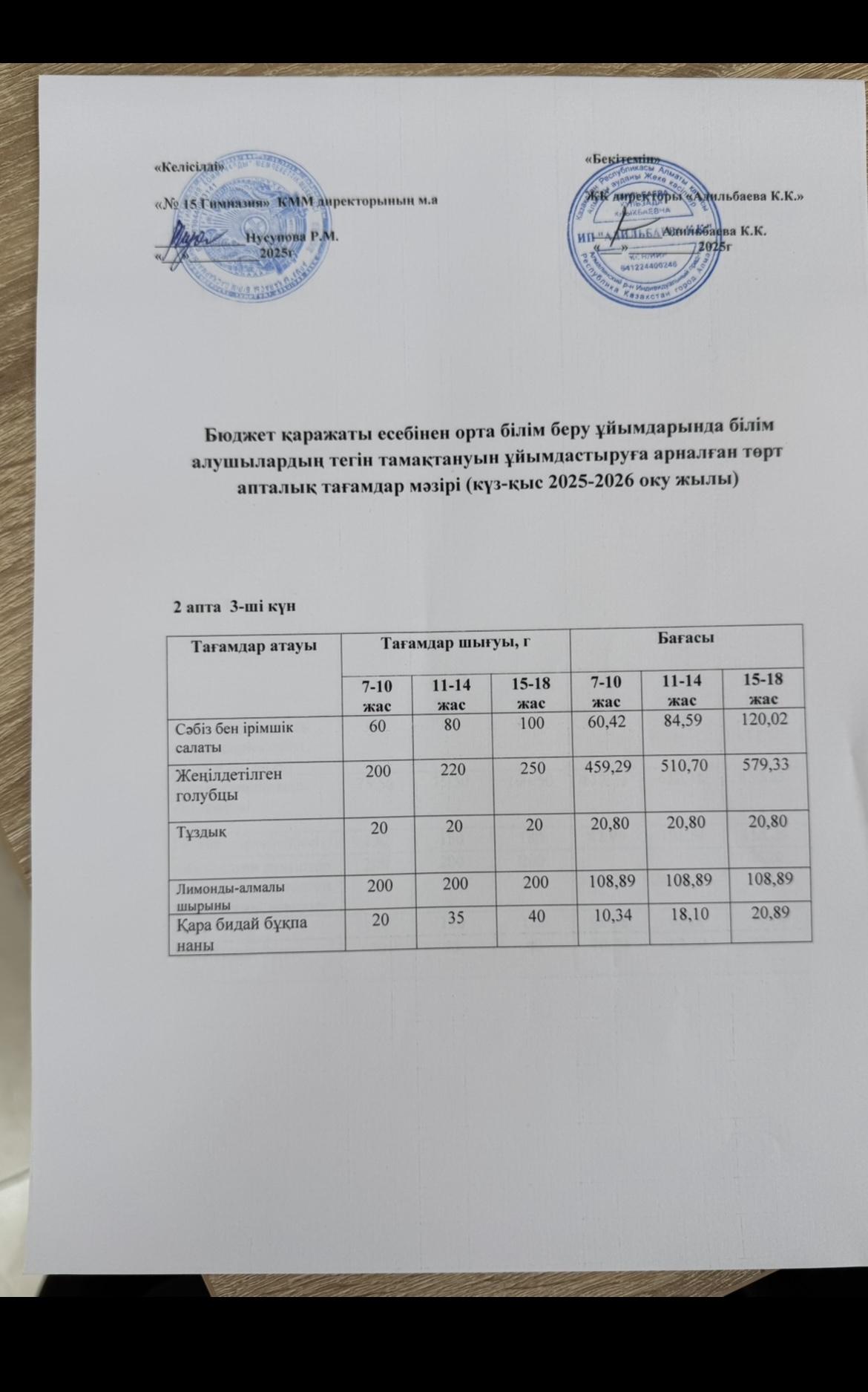 Ас мәзірі 1 апта 2-ші күн 02.09.2025