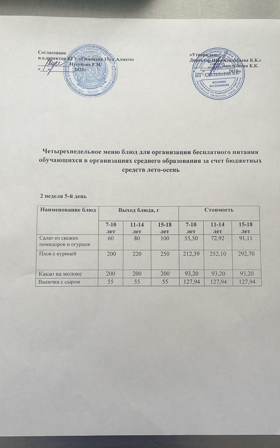 Ас мәзірі 2апта 5 күн, 15.03.2024 ж
